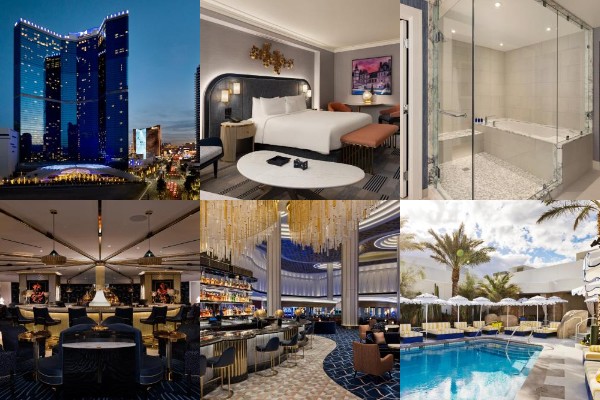 The hotel has over 3600 rooms and suites. The smallest has one king size bed whilst the largest suite has a separate living room and two full bathrooms. All are decorated with soft lighting and equipped with high-end features such as electronically controlled drapes plus views of the mountains, pool or strip. Laundry and dry-cleaning plus a turndown service are available on request.