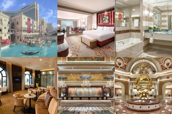 Famous Italian themed luxury hotel with canals, gondolas and beautifully decorated rooms and suites with magnificent views of Las Vegas.